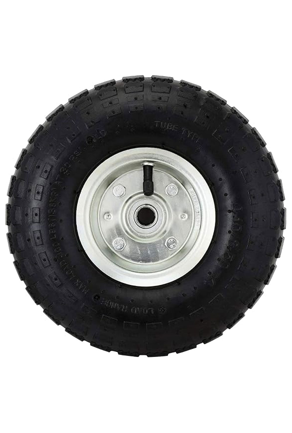 • UNIVERSAL 4.10/3.50-4 TIRE AND WHEEL FOR VERSATILE APPLICATIONS - Universal 4.10/3.50-4 Tire and Wheel, featuring 10-inch diameter pneumatic rubber tire. This tire fits seamlessly with dollies, walk-behind lawn mowers, hand trucks, wheelbarrows, yard trailers, dollies, trolleys, wagons, snow blowers, pressure washers, air compressors, generators, wood chippers and more.